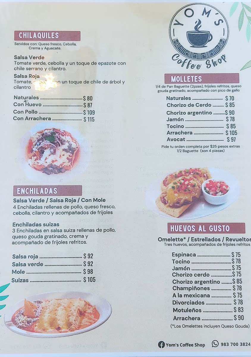 Yom's Coffee Shop Menu