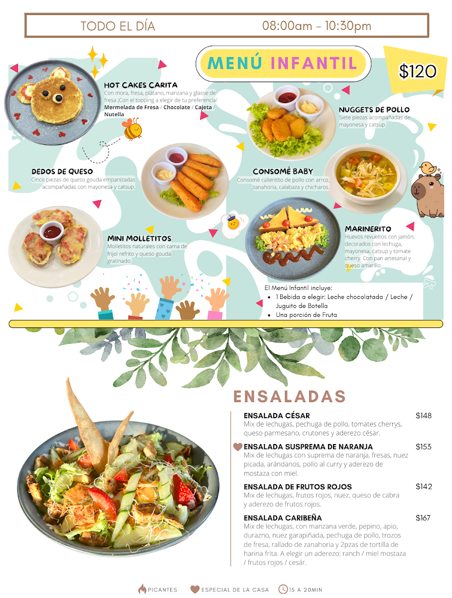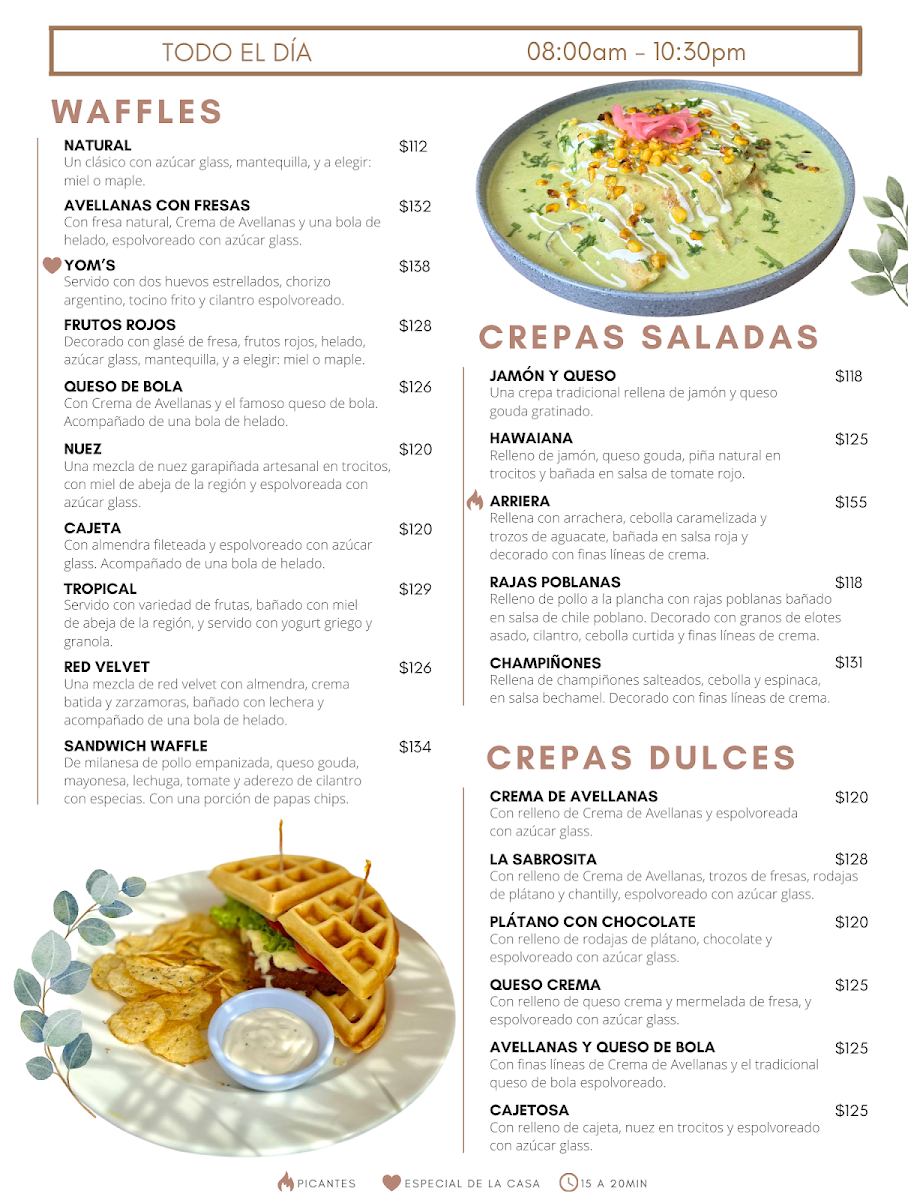 Light bites like crepes and club sandwiches provide a satisfying option for a midday meal, while heartier plates such as chilaquiles or pasta bring warm, comforting flavors to the table. Sweet options like a pastel de queso de bola or a frappé—choose from chocolate blanco, matcha, or Oreo—pair nicely with a leisurely coffee break or an informal catch-up with friends.